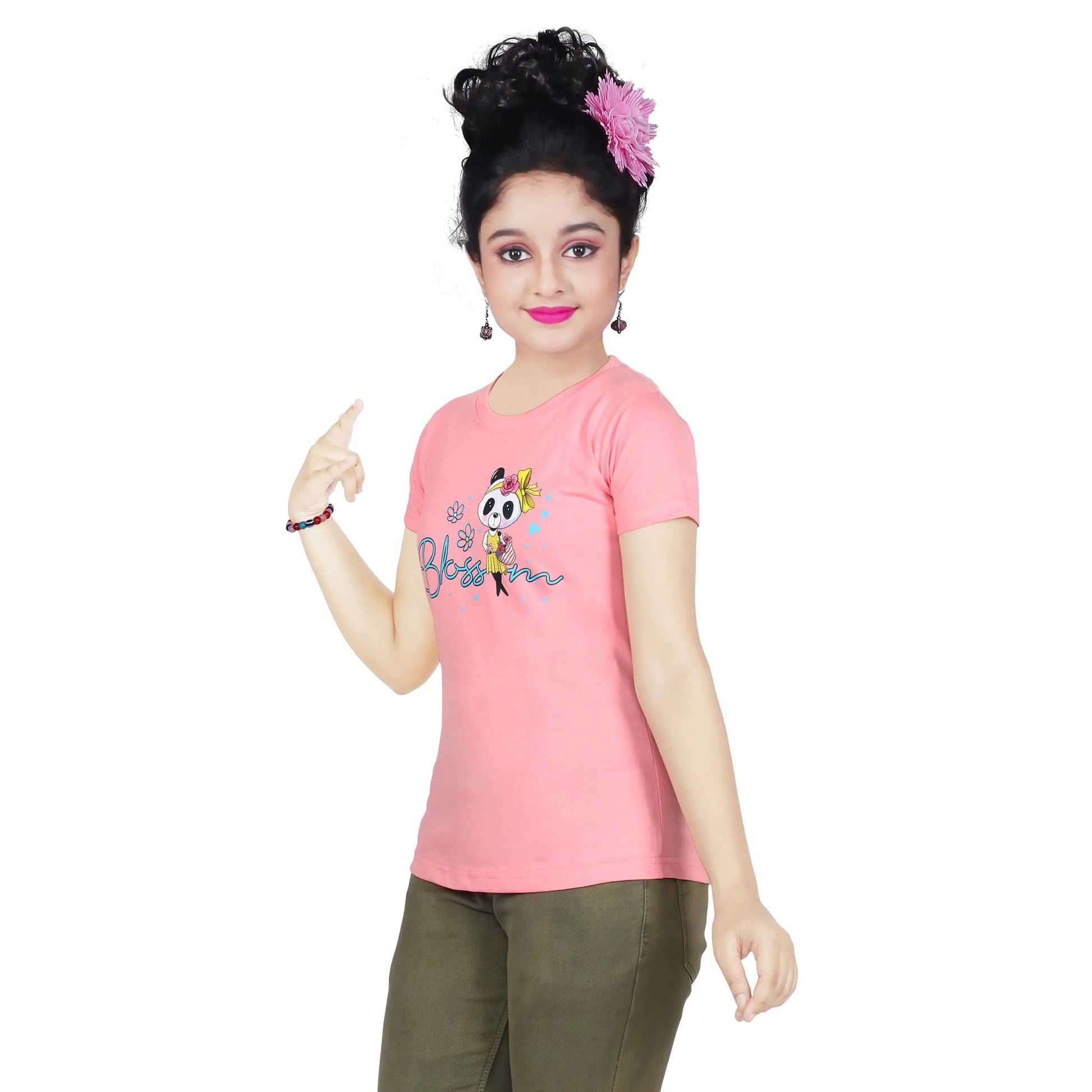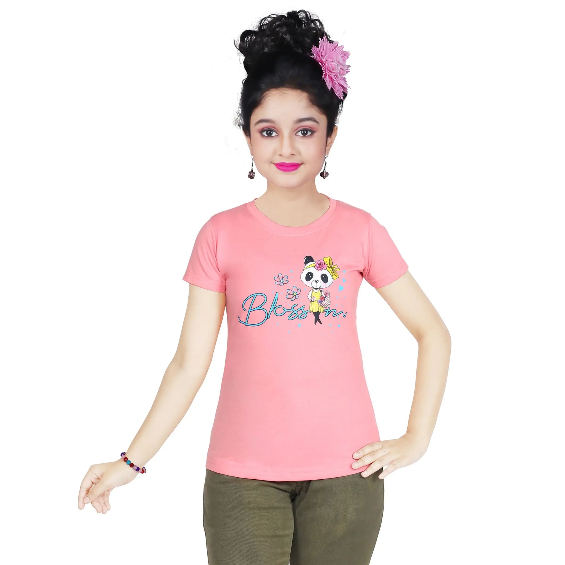 Girl’s Blossom Panda Print Cotton Pink T-shirt (3 – 9 Years)